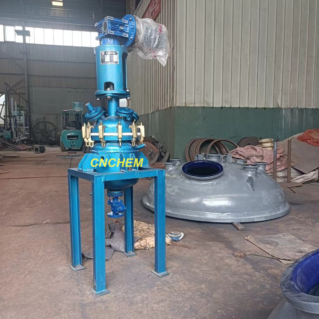 ??????????????????????? 專業(yè)設計,精工制作,我公司為滿足工廠、院校、科研單位等實驗室的試驗需要,開發(fā)出了以小型搪瓷反應釜(即小型搪玻璃反應罐)為主體的實驗室用搪瓷小型成套設備,配套有小型的搪瓷管件、換熱器、儲罐等設備。搪瓷實驗室用小型反應釜規(guī)格為5L—50L,全套配置包括釜體、釜蓋、電機(防爆或普通)、減速機(渦輪渦桿免維護減速機,擺線減速機等)、攪拌器(錨式63或85rpm, 槳式85或130rpm, 葉輪式85或130rpm)、加強型溫套管、放料閥(上展或下展)等,加熱方式有兩種:(1)通用型夾套,外置導熱油爐或鍋爐進行加熱或冷卻;(2)電加熱:在夾套內預置好電加熱棒,放入導熱油進行加熱,如需冷卻,在靠近釜壁再加冷卻水盤管。支撐方式有兩種:(1)托耳:需要自制操作平臺;(2)支腿: 三根支腿,或四根框式支腿,落地式支撐。工作壓力≤10KGS,工作溫度-20℃—200℃,嚴格按照GB150-1998<鋼制壓力容器>和<壓力容器安全技術監(jiān)察規(guī)程>以及GB25025-2010《搪玻璃設備技術條件》等有關標準設計制作,具有耐腐性強、操控簡便、使用壽命長等特點。